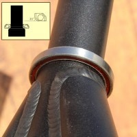 ステムにより破断の力がかかるコラム上部には、内部にアルミのシャフトを仕込む事で格段に強度・耐久性を向上させています。また、このアルミのシャフトにはヘッドキャップ(トップキャップ)用のネジ穴が用意されているのでスターファングルナットは不要。この辺の配慮も良いですね。
